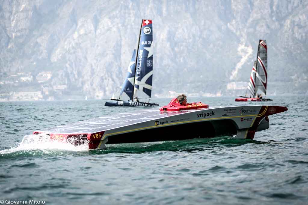 There was still a lot of summer thunderstorm activity in the Lake Garda region but finally, racing got underway today on day two of the McDougall + McConaghy Moth Worlds 2017 hosted by Fraglia Vela Malcesine.